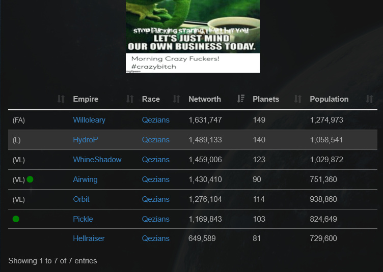 71 Napped us as I slept. Schnapp sealed the deal as VL. We are down 21 planets. I have to recall 14 fleets.